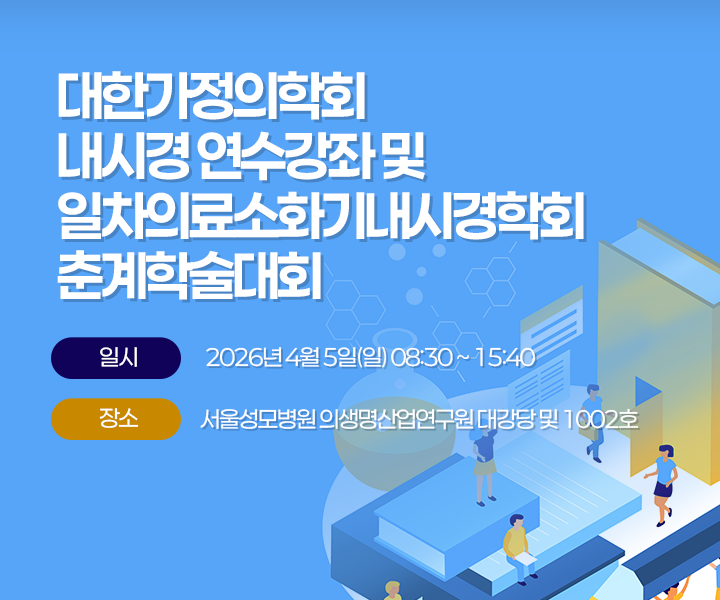 - 대한가정의학회 CME 사이트에서 진행중인 모든 강의 및 학술행사에 참여하실 수 있습니다. CME 사이트 바로가기